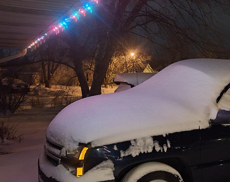 still more to come looking at past & future radar. I just went out to plug my tractor in, with the wind hard to say, some spots barely a foot, other places waist deep, knee deep is probably average