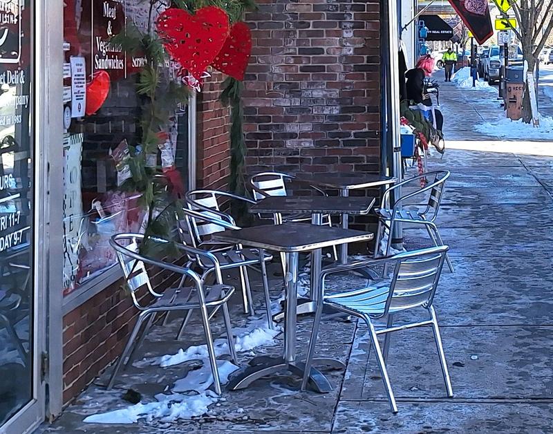 No one eating alfresco in front of Current Cuisine!