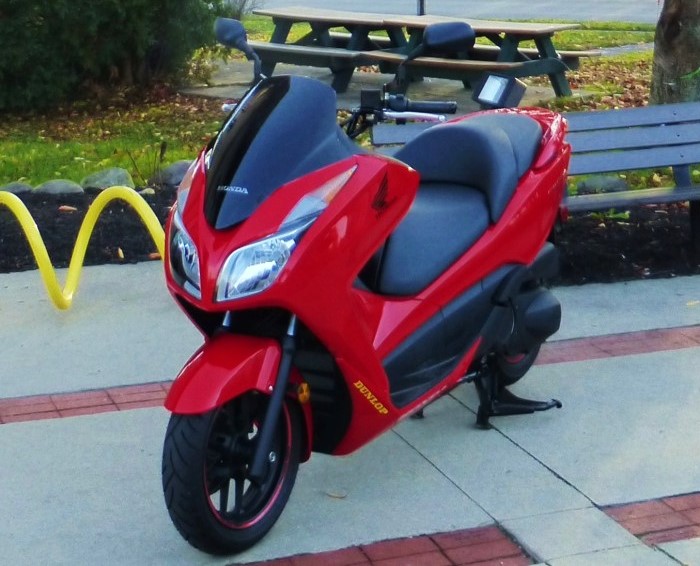 * I sold the Forza in phone calls and emails to a distant dealer for a Burgman. He met my asking price, and I agreed to his discounted, "internet price". I emailed several photos of the Forza - after the sale I told him that I could remove the "HONDA" script. He said, "No, it looks good and should make it easier to sell!"